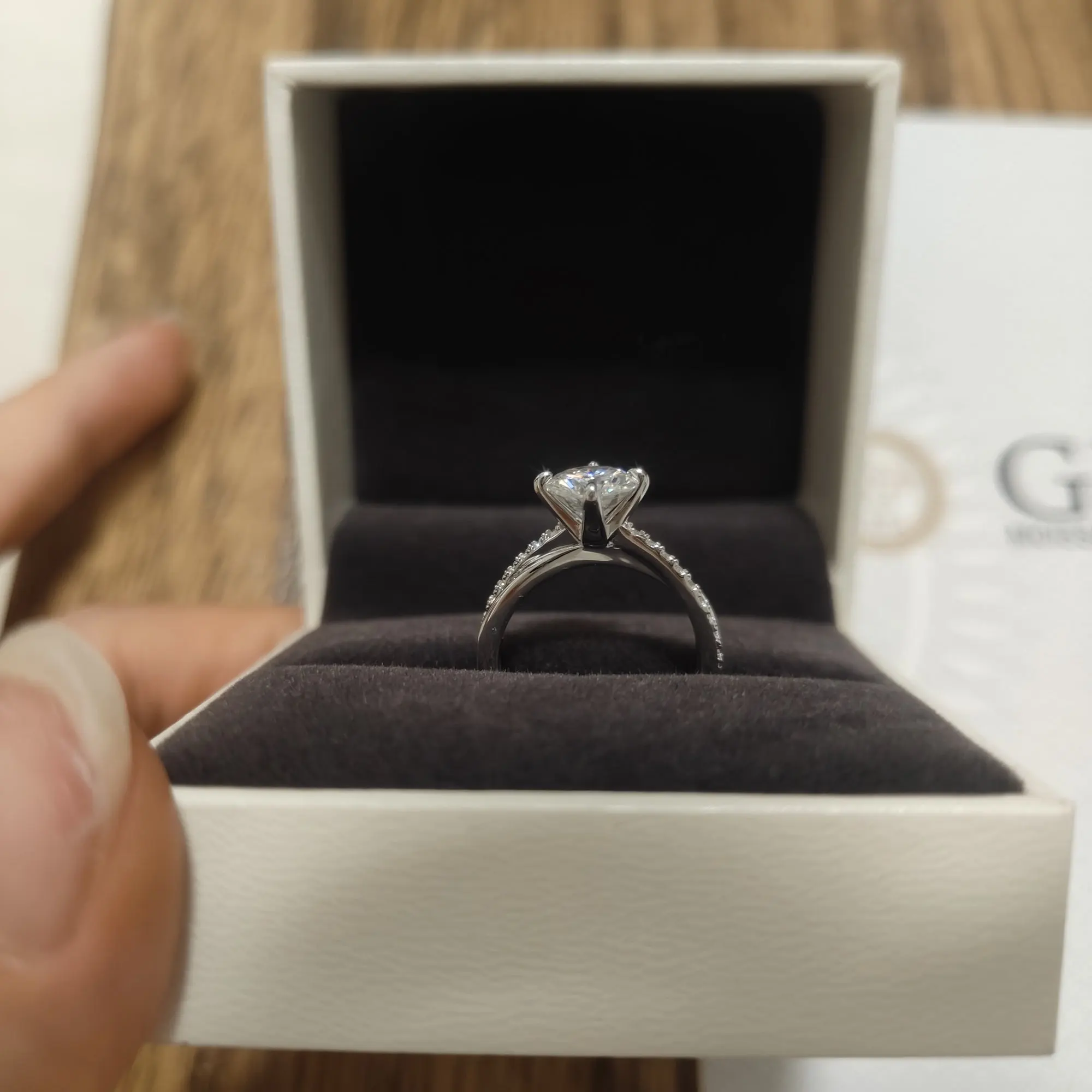 Whether you choose the romantic rose gold or classic white gold, this stunning moissanite ring delivers diamond-like brilliance at an accessible price point.